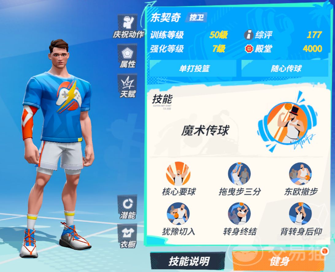 技能方面,东契奇与其他人一样拥有两个橙色技能和五个小技能,其中主动的橙色技能是“魔术传球”,可以让他在持球和进攻的任何情况下将球传给队友,并且该技能所需的士气非常少,只要五百就能使用,每次使用基本都可以帮助你化解一次包夹危机,同时经过升级强化该技能还可以让接球队友获得更高的命中率。
