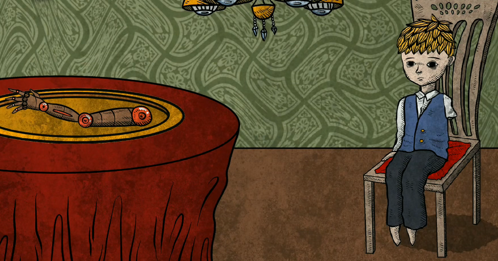 在这个关卡中是延续了第一个章节的故事,也是从鱼头教的故事开始展现剧情,而在第一个关卡中大家看到的画面中出现的角色并不是哥哥,而是代表弟弟的角色,画面右边是坐着弟弟,在之前的剧情中讲解过弟弟在身体上面也是有一定缺陷的。