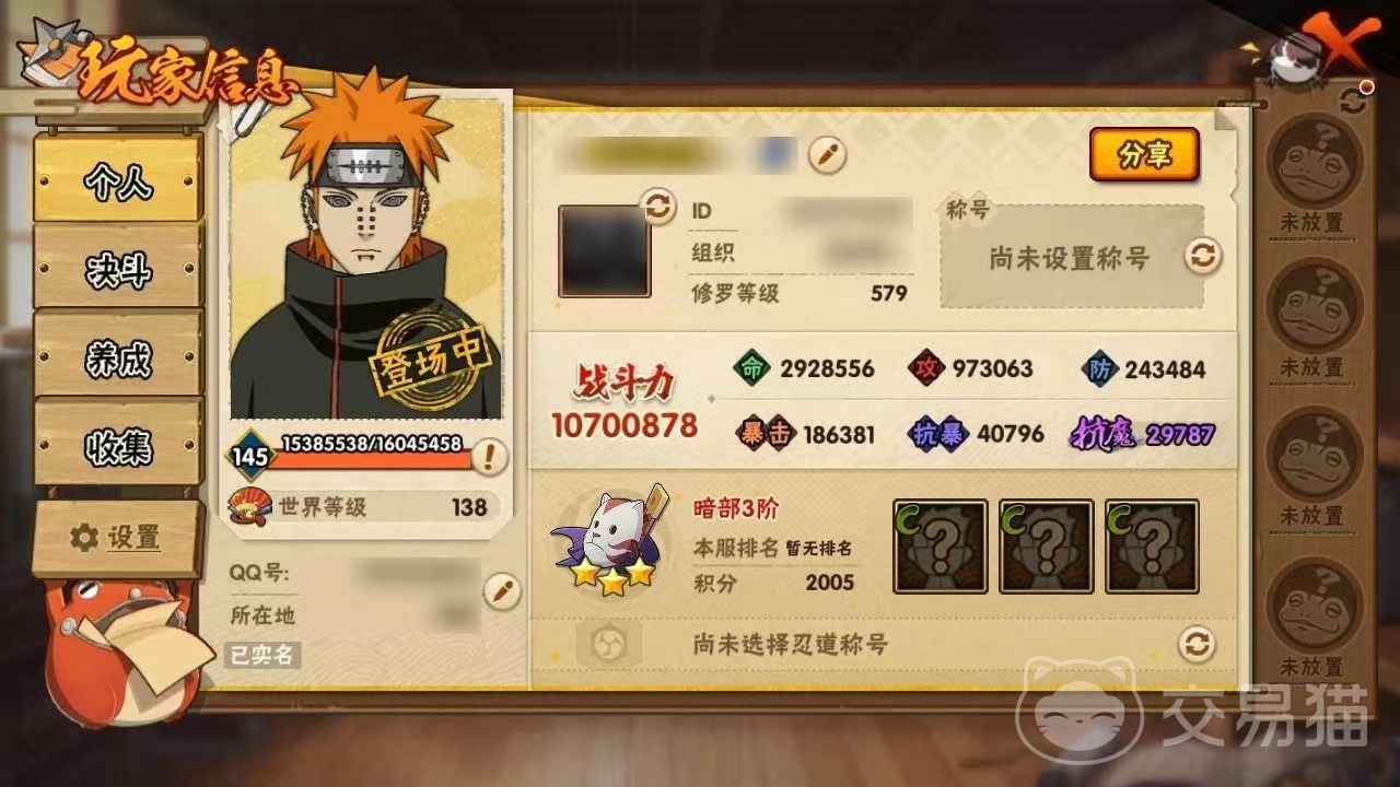 想必大家这段时间都被青水的强度所震撼,最近很流行游戏中比较超模的英雄。有小伙伴想知道火影忍者账号交易平台有什么?青水就是一个操作较为简单,机制比较超模的一位忍者。相信很多火影忍者玩家都被青水带冻雪打败过,一时间很难能找到反制他的忍者,当然有一些由于各种原因没有获得到他的玩家也是非常的后悔。小编建议,小伙伴们可以到交易猫平台上去购买相关的账号。