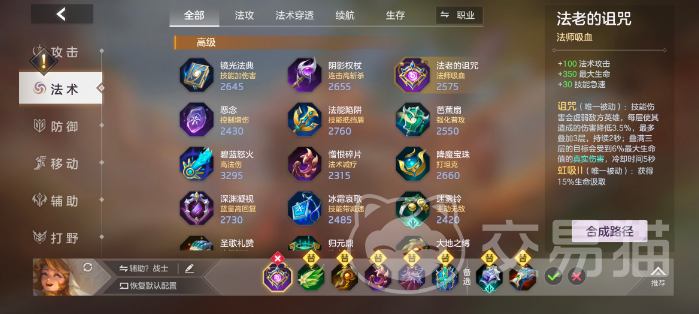 首先在第一个选择上面大家需要考虑一下马可波罗的被动技能,所以要是经济上来了先来一个法老诅咒是最好的,至少在吸血能力上面大家是不用担心了,在大家比较担心的续航上面也会有一定的效果,特别是带来的真伤是增加了很大概率的。