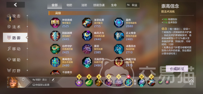 然后在2技能上面想要效果更好的话还可以买一个憎恨碎片,这样影响对面的治疗也是不错的,最后大家还可以带无畏肩甲,没有人带团战的话这个装备就还可以,如果是对面有的法师比较多,也可以使用黑羽比较保险,法师如果带的都是控制类技能的话,大家就把黑羽换成崇高信念保住自己更合适。