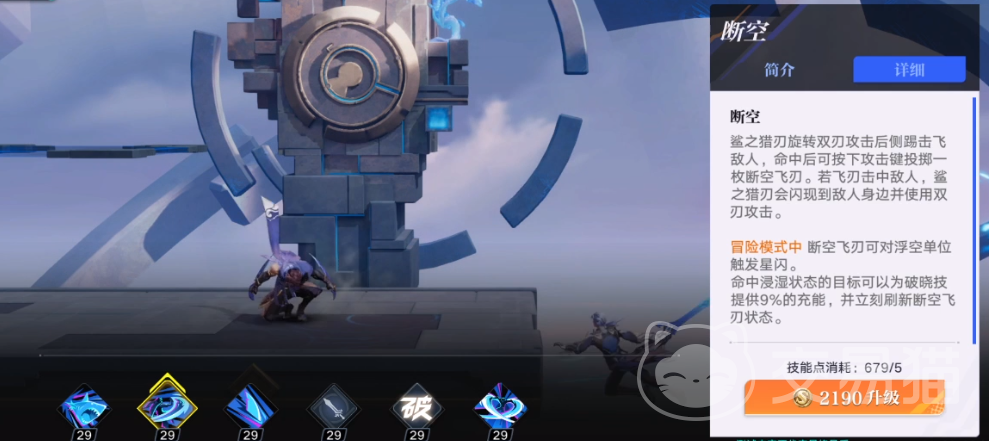 澜在一技能上面是一个能够快速转移到下方的一个技能,要是前面是水的话,会澜会直接变成鲨鱼然后向上面跳出来,要是前面是天空的话就直接向斜上方飞过去,所以在方向上面是不异样的,二技能是一个输出技能,使用的时候在上面可以利用武器带来输出,而且使用双刃的时候会直接将敌人给踢飞出去。