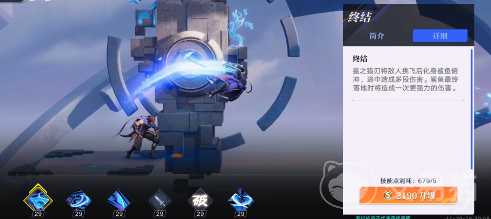 最后一个技能是一个可以强迫敌人改变位置的技能,使用这个技能的时候澜也会变身成为鲨鱼,不过在这里他变成鲨鱼之后是有一片属于他的领地,这个时候敌人就会被拖到这个领域当中,然后在上面发起双刃攻击,这个技能的效果也是相当不错的。