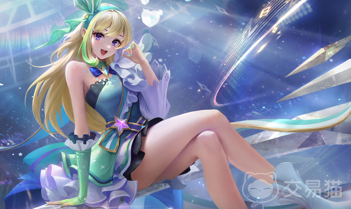 灵动舞步:这是一款偶像歌手风格的皮肤,本身穿着绿色长裙,头戴蝴蝶结看上去非常或活泼可爱,并且该皮肤全技能均有不一样的特效加持,具体表现为蓝色的星光风格,玩起来会有着很好的音效反馈。