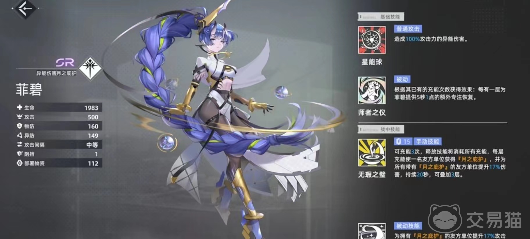 菲碧是一名SR角色,他所有的技能也都以控制为主,从属性面板上来看,输出不算很高,而且作为辅助的话,随机性比较大,但是他的跃迁技能还蛮好用的,辅助能力超强,能够在战斗的时候,在关键时候为队友提供很大的帮助,他的技能都是辅助类型的,比如说增益技能,以及治疗效果,不管是哪一个都可以有效的为团队提供帮助。