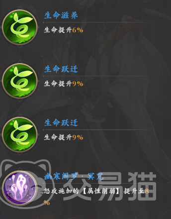 被动方面,他也是比较全面的代表,两个减伤增益都可以提供4%的伤害和减伤提升,另一方面,三个生命方面的属性加成也令甄虚变得更肉。