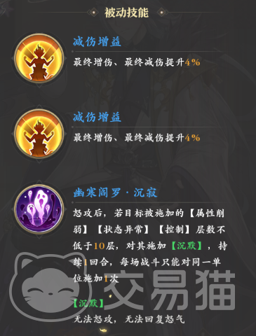 两个幽寒阎罗系列的被动则分别可以对debuff层数高于10层的敌人施加沉默和额外的属性削弱效果,只不过两种效果都需要通过怒攻才能触发。