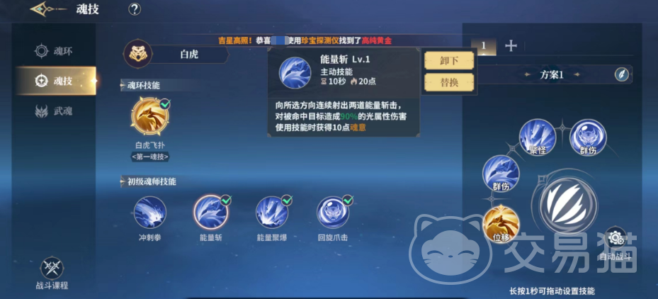 能量斩这个技能是白虎的一个连击技能,使用的时候会发出两次斩击,斩击的效果造成时候带来的输出数值是90%的光属性伤害,呢呢概李肮举报这个技能是一个冷却时间比较短的技能,只要8秒就可以刷新,带来的拉扯效果概括范围很广。