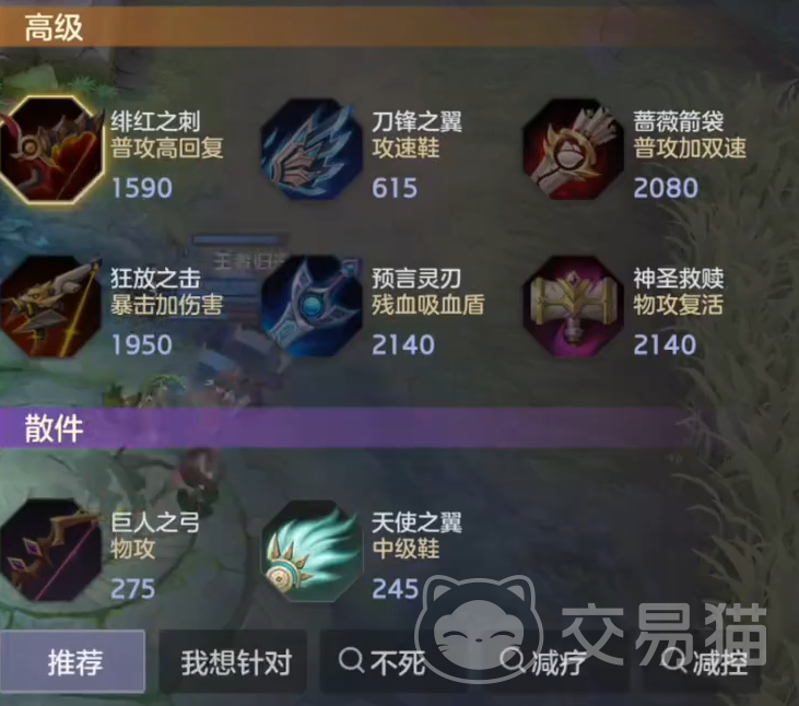 之后第四件装备是肯定要出穿甲弓的,有了穿甲弓之后才可以将输出最大化。出完穿甲弓之后,第五件装备按道理来说是出掠食者之剑的,但是有的时候大家可以给这件装备换成复活甲,毕竟只有活着的人才能输出,有了复活甲之后不管在什么情况下大家都能成为这个活着的人。