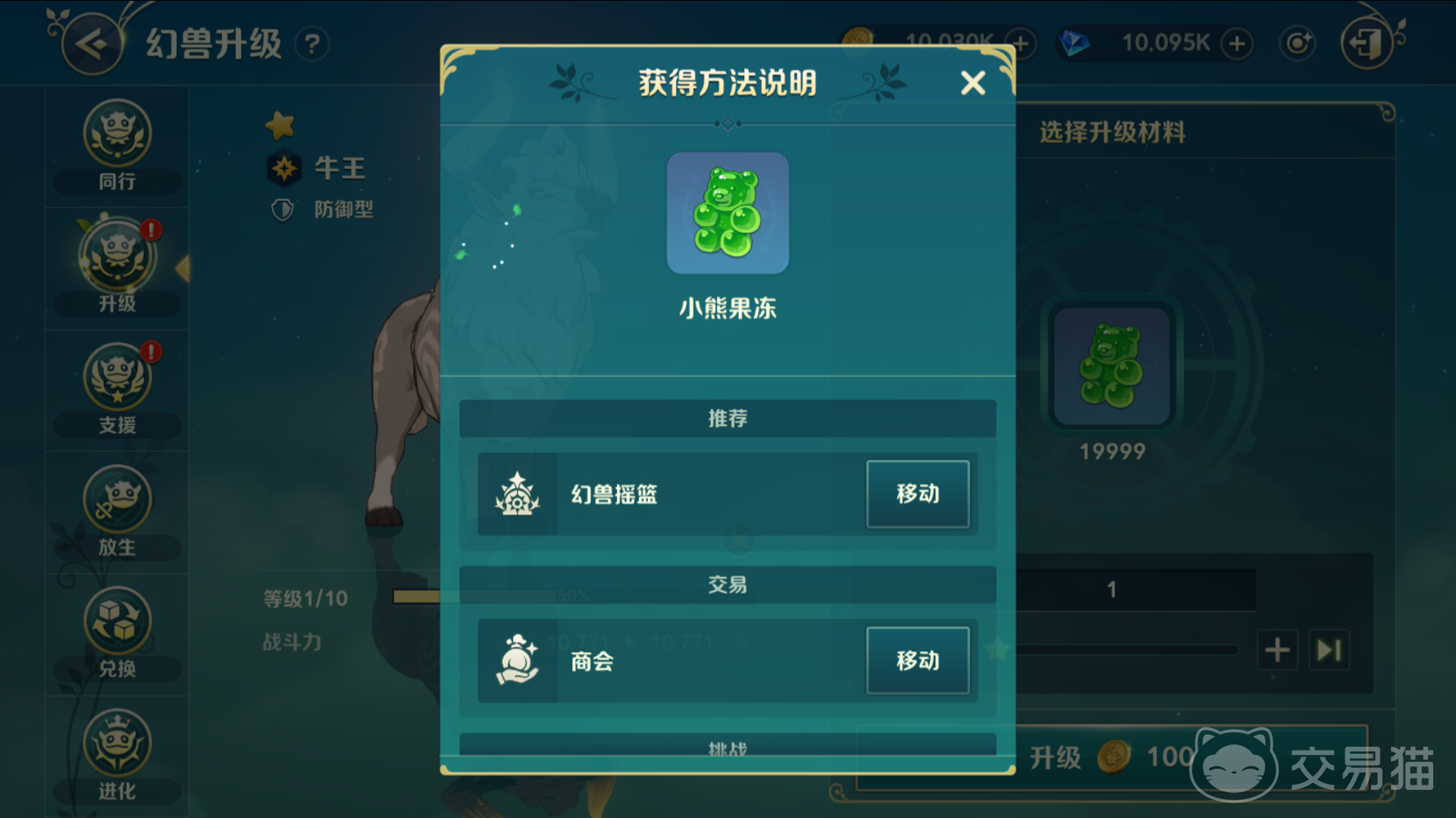 小熊果冻是第二个进化培养需要的材料,主要是给他们提升经验的,幻兽摇篮这个副本玩法当中可以获得,另外一个获取方式也是购买,还是在商行里面,不错需要使用镀银代币。