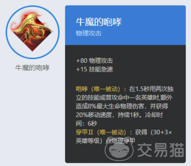 风暴猎手可以提供高额的物理攻击和暴击率,守护之翼可以在生命值低于30%时提供护盾和移动速度,牛魔的咆哮可以增加生命值和物理防御,并且在受到伤害时提供额外的物理攻击,伤痕使者可以提供物理穿透和暴击伤害,并且在暴击时降低敌人的物理防御,不朽之王可以提供生命值和魔法防御,并且在死亡时复活并恢复一定的生命值,平衡支配者可以提供移动速度和冷却缩减,并且在使用技能时增加自己的物理攻击。
