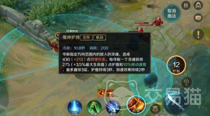 牛魔王的被动技能是一个回血技能,当角色低于百分之30的时候会进行回血,回血的比例大概是一半左右,同时每次攻击都可以减少被动的冷却时间,这样在对象的时候就不需要频繁回家了。