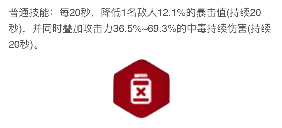 第4个技能是被动技能,可以为敌方队友提供17.3%的暴击,而且还有增益效果,在使用的时候会及时锁定自己队友最低血量的一名成员可以给他带来最高的增益效果。