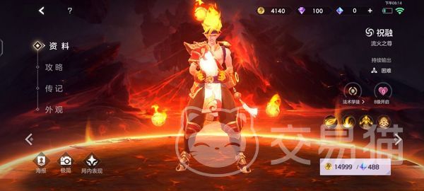 大招在使用的时候,角色会直接变成炎神形态,在该形态下他的普通攻击会召唤出火焰波对敌人周边的所有敌人都可以造成270点火焰伤害,并再次添加流火神印,而且当该角色使用该技能的时候,变身过程是不会被控制技能打断了哦,另外流火神印的主要效果是积累到四层之后直接爆发,对敌人造成280的法术伤害。