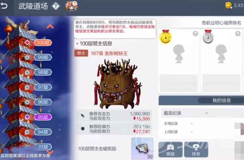 总之,武陵道场是一个考验玩家实力和速度的副本,你需要在有限的时间内打败不同层级的怪物和boss,以获得更高的排名和奖励。你可以在进入副本之前使用一些增益药水,比如提高攻击力、暴击率和移动速度的药水,来提升自己的输出水平和通关效率。如果你能坚持到最后,你就会得到丰厚的回报和荣誉。祝你在武陵道场中玩得开心!