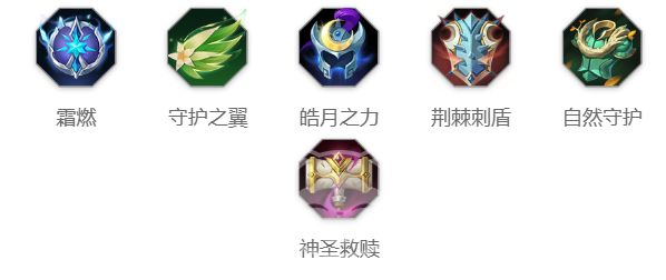 方案一:“霜燃+守护之翼+皓月之力+荆棘刺盾+自然守护+神圣救赎”。这套是偏向持续战的打法,先出霜燃和皓月之力两个搭建可以更好的黏人,同时有一手回复和保命能力,守护之翼则提供法防与韧性很好的抵抗了控制手段多的法师,然后荆棘刺盾和自然守护均提供不俗的生命值,并且一个加物防一个加法防,前者还有重伤与反伤,后者则可以进一步提高回复。最后的神圣救赎则是提供一次复活,附赠的少许攻击和物防属性对胖达也有增益。