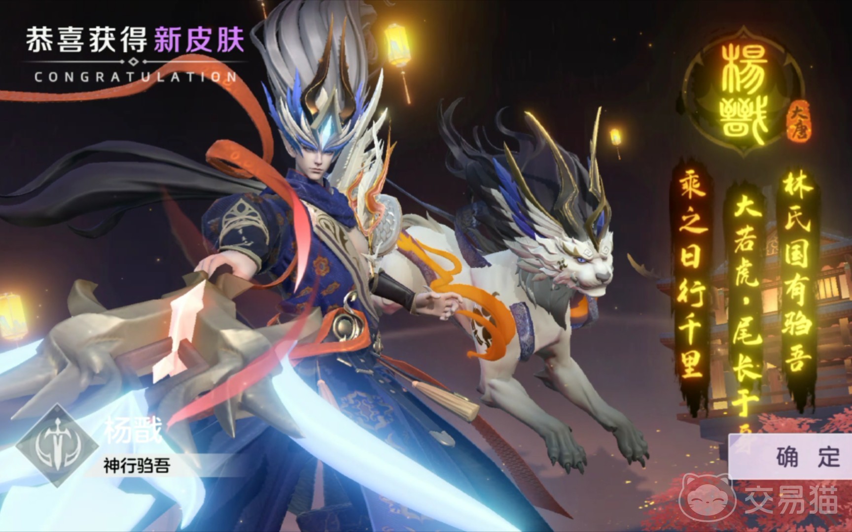 首先介绍的就是将要推出的神行驺吾,这套皮肤的设计灵感来源于上古神话驺吾。这个神兽的特点就是速度快,只有风才能追上它。玩家想要获得这款皮肤的话需要完成4次的限时秘境任务。