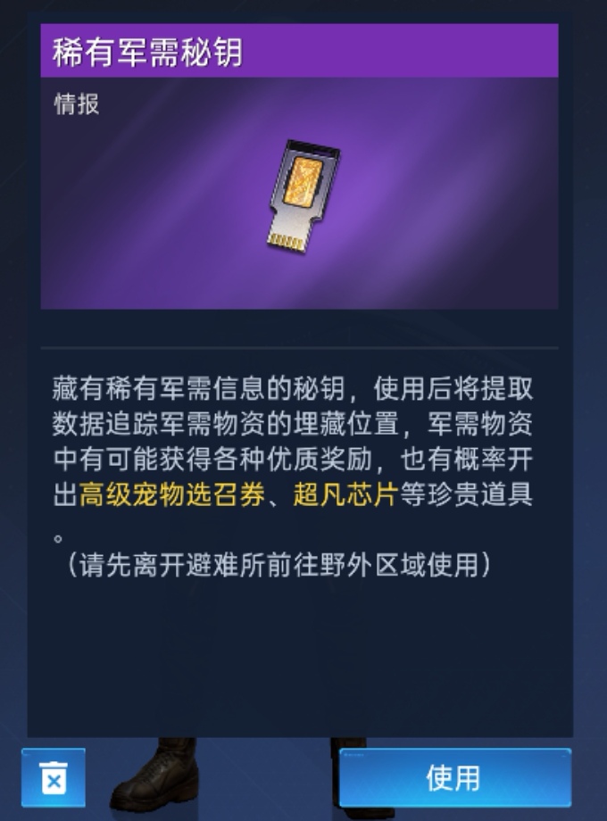 信号塔信号站是进行信号监测与数据采集的场所,产出为军需秘钥。在伊甸城使用军需秘钥,将追踪军需物资的埋藏位置,幸存者找到并开箱有可能获得各种奖励,还有概率开出高级宠物选召券、超凡芯片等道具哦!