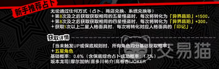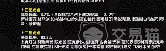 船长基德是坂本龙司的初期人格面具,拥有弱物理的属性,但是战斗力非常强悍,前期很好用,后期可以忽略不计他的战斗力,卡门是高卷杏的初期人格面具,属于恋人分类下的火属性专精怪物,在面对弱火的怪物,非常好用,耐火属性,弱冰属性,摩尔加纳则是自带疾风属性的回复辅助型人格面具。同时具备一定程度的支援能力,在前期不是很好用,中后期随着战力提升变得比较好用。