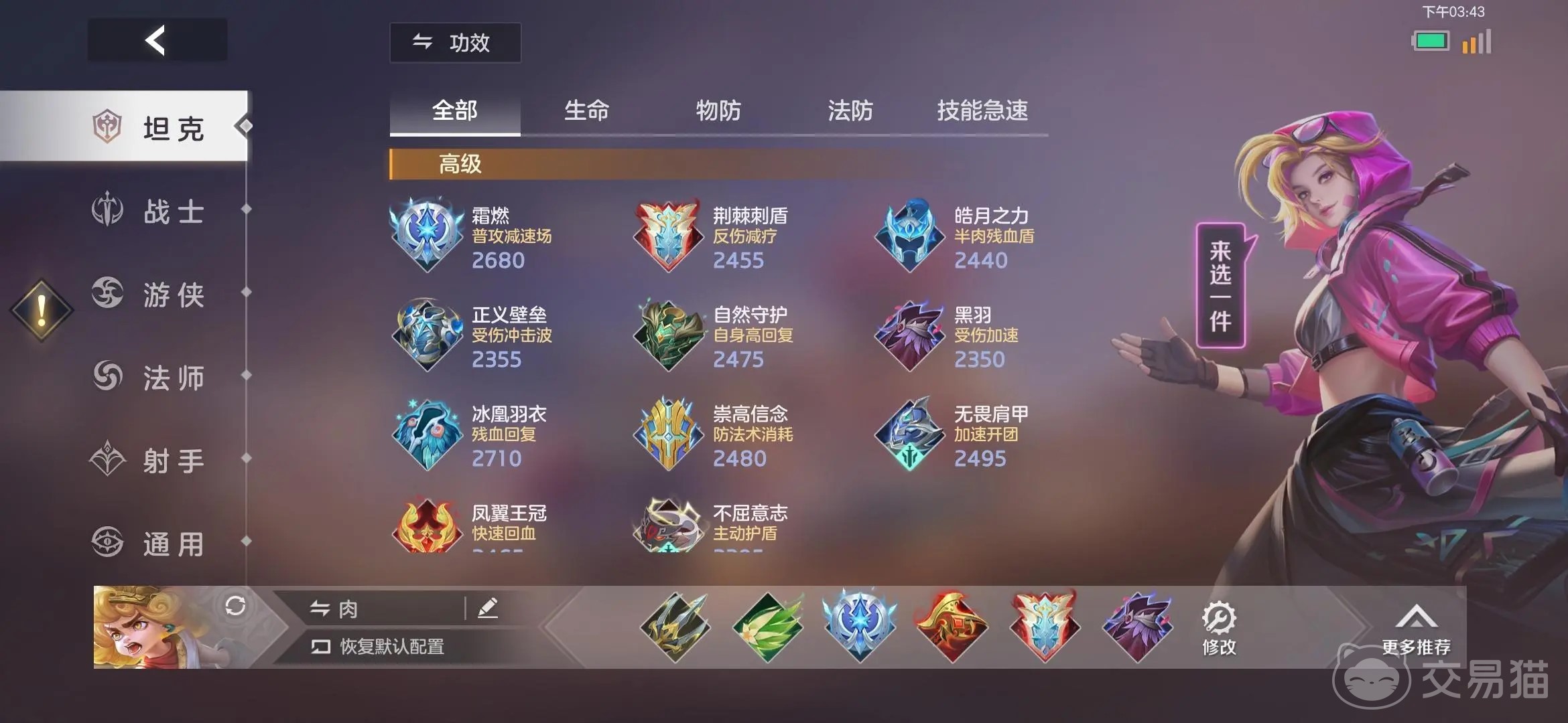 在出装上面建议: