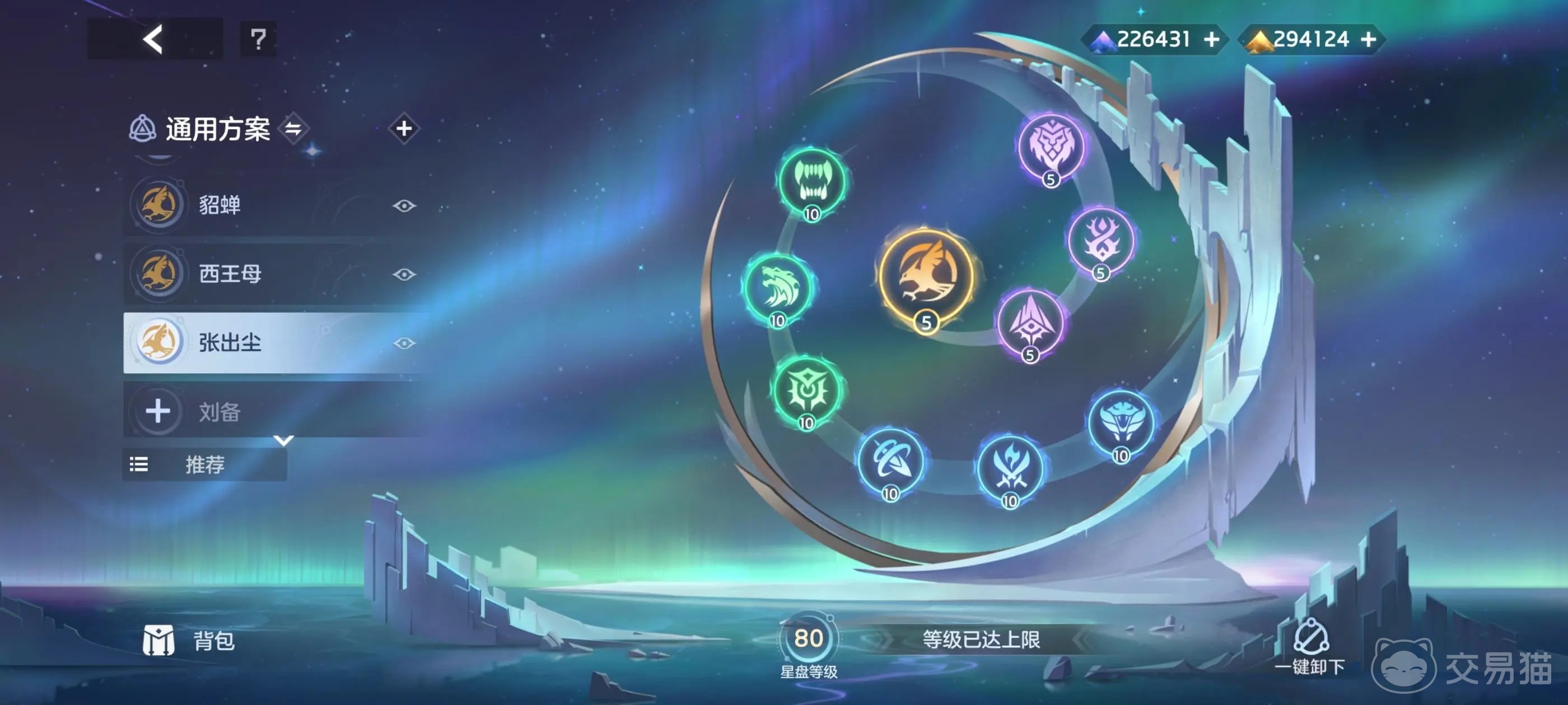 张出尘的星盘推荐:绿色选择獠牙,渴血,强韧;蓝色选择穿刺,汲取和狩猎;紫色选择:雄狮·勇战,青藤·坚韧,土灵·赐福;橙色选择猎隼·扑击。