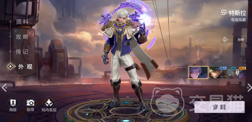 特斯拉,是一个操作好了非常秀的英雄,如果能玩好出法强装可以1打5,玩不好的话就出物理装也能发挥作用。被动是他的核心技,周围存在磁场每当有敌人英雄靠近磁场边缘的时候会普攻会充能释放闪电弹射攻击,对首个目标造成法术伤害对后续目标的伤害会衰减。