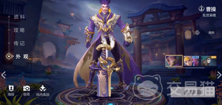 曹操,光是看造型就觉得是个非常猛的战士,他的技能分为轻剑和重剑两种形态。被动轻剑普攻攒怒气,满怒气换成重剑,持续15秒,而且在切换回轻剑后8秒内无法得到怒气。轻剑状态下普攻和技能打中敌人都会回血,并提升移速,重剑提升攻击并得到高额减伤。1技能剑气伤害加减速,2技能冲刺加强化普攻,能充能2次。大招跳斩伤害加击飞,能再释放2次,每次伤害提升,满怒气才会解锁这个技能。重剑形态下1技能变成范围攻击,2技能位移变短普攻减CD。