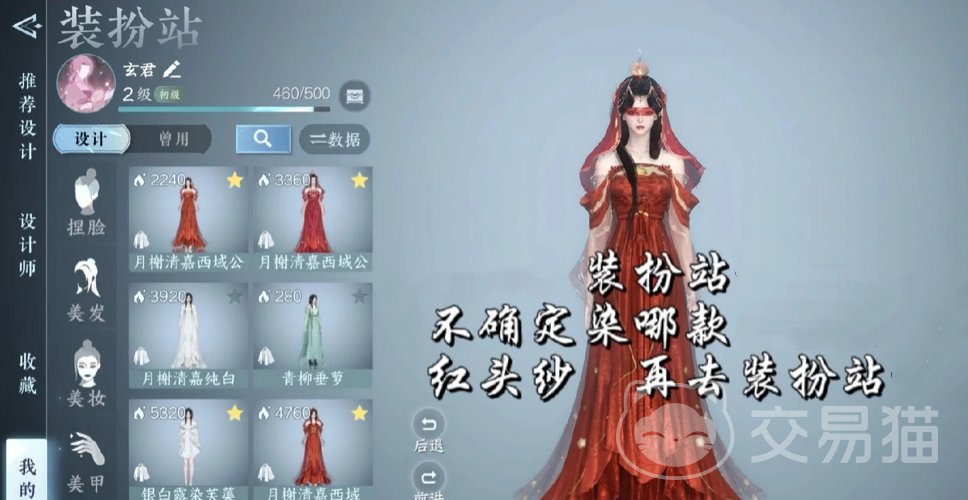 第3步如果玩家在结束后,不知道你想要染色,染哪款的头纱以及装饰的话,那就可以在装扮站中选择喜欢的头纱,点击装扮,挑选颜色,染色成功后进行试穿,这样就能了解到自己更喜欢哪种颜色的头纱,再去装扮站,将这个装扮保存下来,就可以永久的使用这套皮肤。