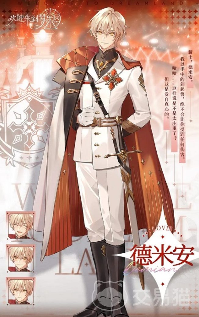 首先是德米安,他是拂晓骑士团的首领,比较年轻有为,沉着冷静应付事情,对待旁人都温柔礼貌,并且还是洛维斯的王子。势力很大,权利也很大,但是他从不滥用私权,是别人眼中最温和可亲的王子殿下。然后是奥菲利亚,她是德米安的手下,也是拂晓骑士团的一员,她会剑术和骑术,并且都十分擅长。而且性格温柔,是女性中人气十分高的角色,而且兴趣爱好还十分地多。