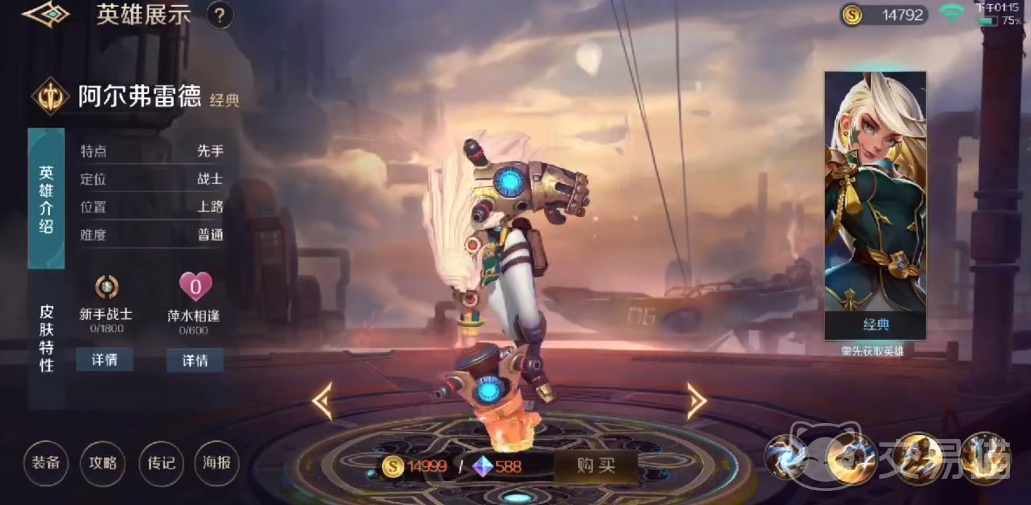 阿尔弗雷德是一个擅长近身格斗的半肉型战士,他的生存能力很强。在一款游戏里,玩家的出装和技能是决定一个角色实力的关键因素。接下来,就是阿尔弗雷德的装备,他的技能,他的战斗方式了。