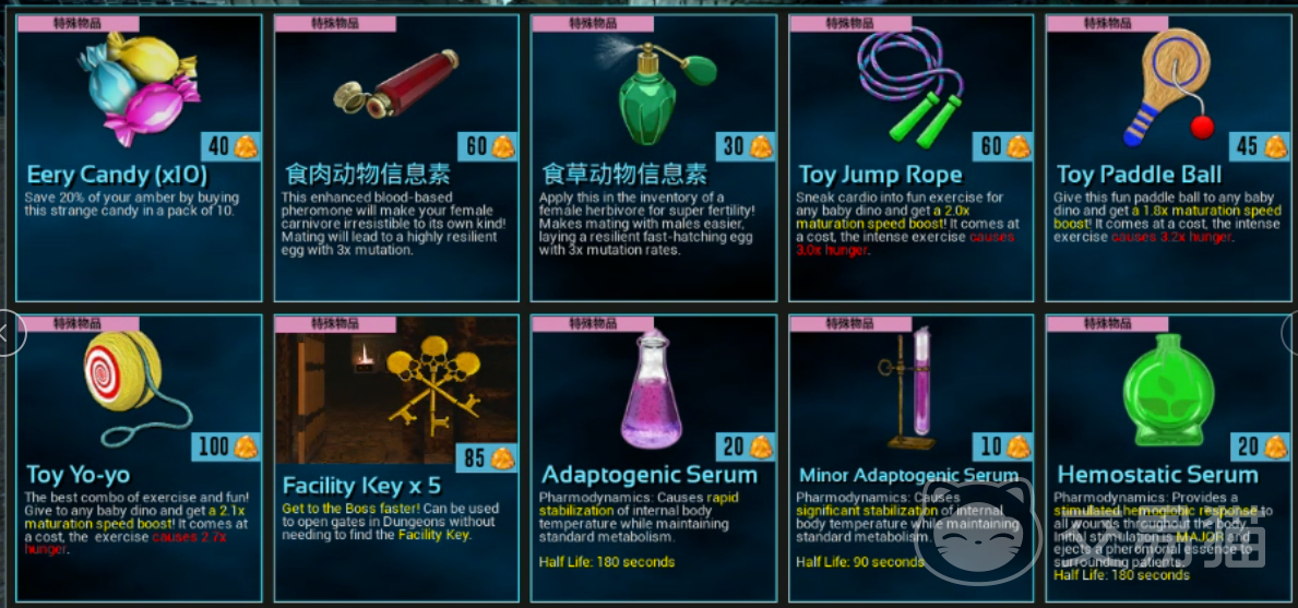 方舟生存进化手游琥珀商店物品翻译 琥珀商店商品中文翻译