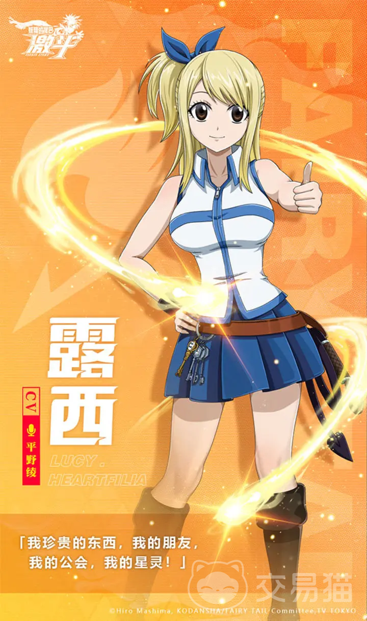 妖精的尾巴激斗露西技能就是这样了,这个角色是在初始的时候就能够得到的御三家的三个角色之中的其中之一,而且品质方面是稀有,所以光是冲着这几点,露西也是大家必入的角色之一了吧。