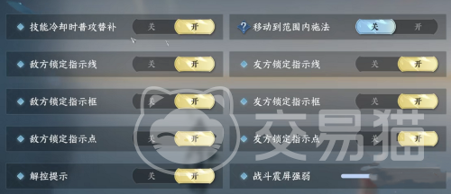 另外还有战斗敌方及友方锁定指示线和指示框和指示点等功能,这个根据个人喜好来选择。这个功能主要是让我们在战斗时能够锁定目标,对于一些需要精准释放技能和有信心操作的玩家来说,可以开启这个功能。