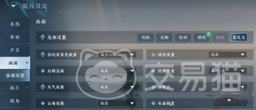 画面方面的设置是游戏中最重要的一部分,游戏系统提供了五个档次的画质选择,从低配到极致,涵盖了不同机型的玩家需求。一般来说,玩家们只要按照总体设置的标准来调整画质就可以了。也就是说,标准档次是适合中低端机型玩家的最佳选择。