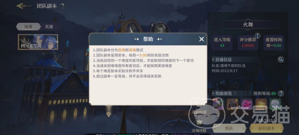 而且只有大家将前面困难模式里面所有的副本全部都过完之后,英雄模式才会开启,所以英雄模式的难度会比困难模式大很多,其次每一个副本奖励的次数都是不共享的,所以只要大家在上面不停的闯关就,胜利就可以不停的拿到奖励哦,但是奖励对于玩家的等级也是有要求的。