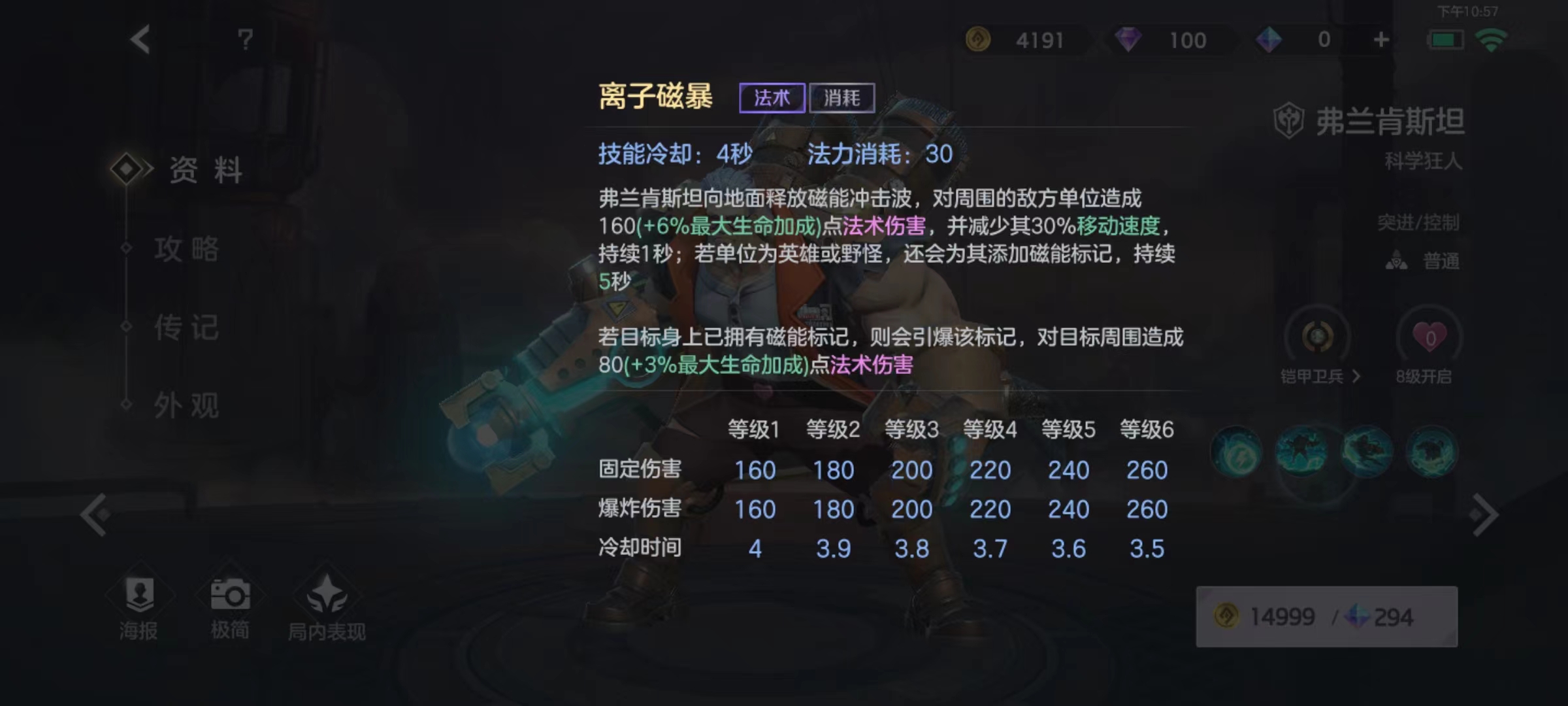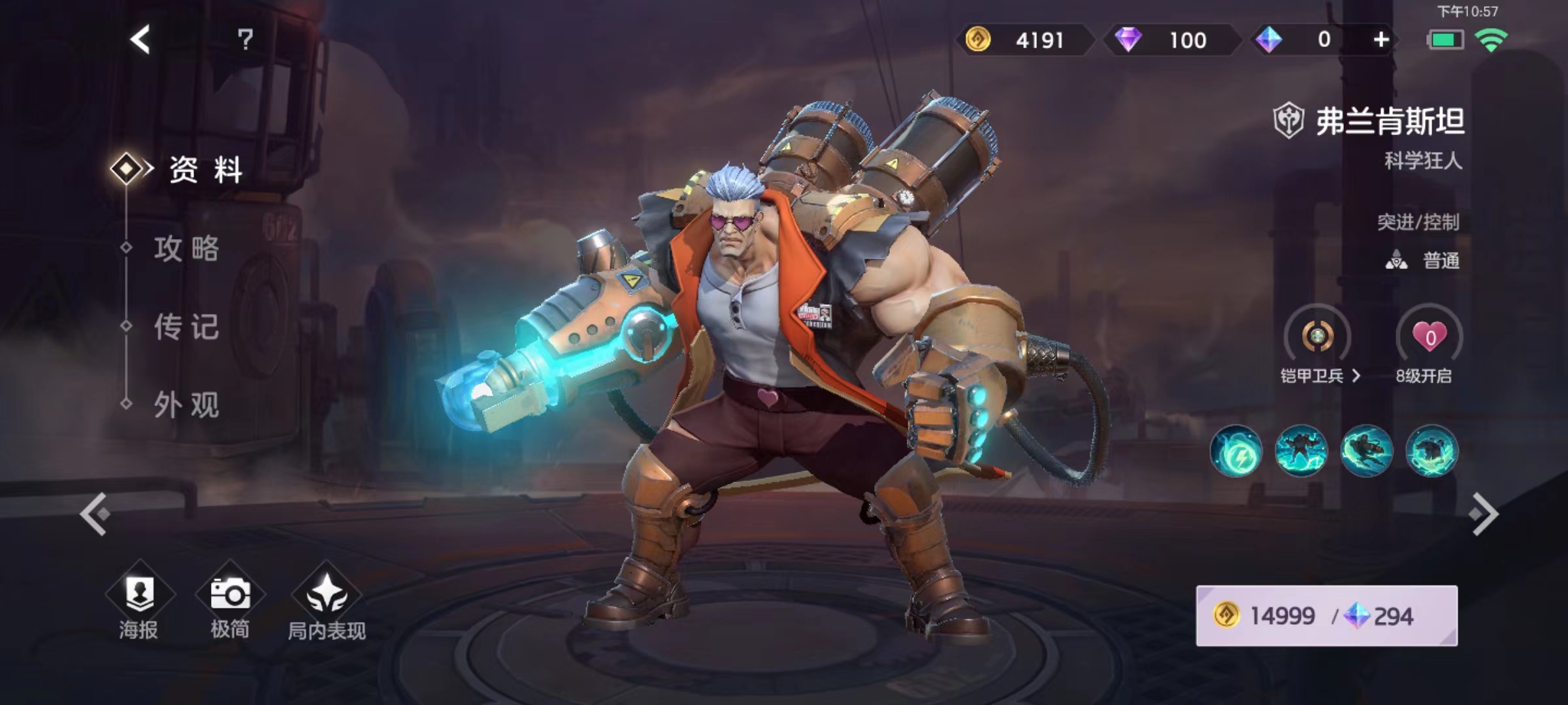 从该英雄的外观中就可以看出,非常适合作为坦克,不仅块头很大,身上还有一系列高科技装备,自身就是一名科学狂人,从技能效果来看也确实如此,今天小编来讲一下曙光英雄弗兰肯斯坦技能有哪些。坦克英雄目前在游戏中定位也非常重要,可以为团队其他成员吸收伤害,承担起前排屏障的重任。