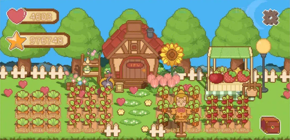 在可爱村物语中,种植一些农作物。是最稳定且最基础的赚钱方式之一。每次的播种及收成都能够获得经验值,并且能够获得大量的金币。当然不同的作物,它的成熟时间,获得的金币的量都是不同的。新手刚入门时,可以选择收成时间较短的作物。像这种作物会有一个缺点,就是不断的要去等时间不断的登陆,需要去收农作物,这样子才能够得到收益是最大的。比如说小麦时间短收益高,使我们的农田快速升级。当然各位小伙伴如果获得大量的金钱,也可以花费比较高昂的价值去购买更高级的种子种在农田里,获取更大的利益。