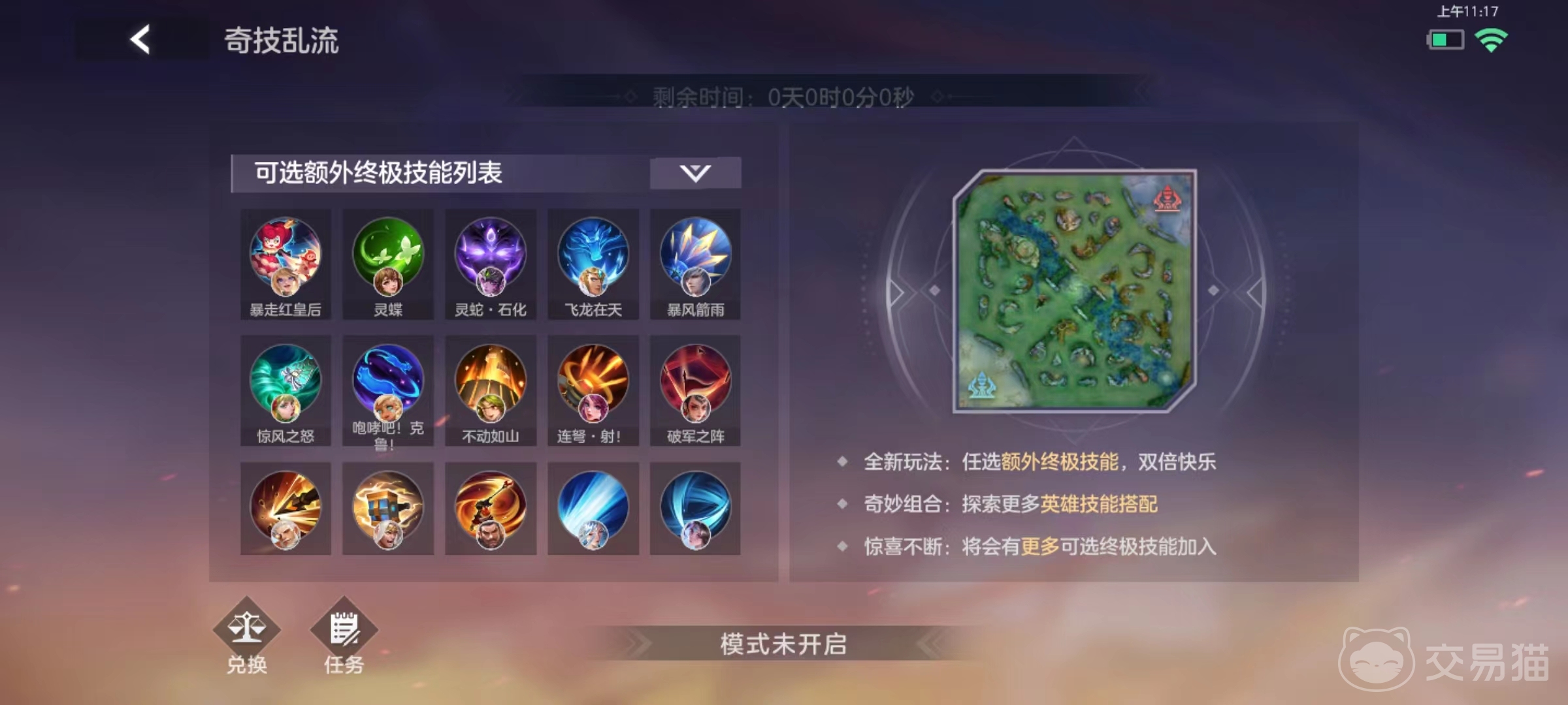 这也是这项活动被命名为奇技乱流的重要原因,玩家可以自由选择多种不同终极技能组合起来。这里面所有列表中选项都可以任意选择,很多玩家经常感叹,大招虽然好用但只有一个,现在就能够满足需求。所有技能都是大招,平常难以体验到的疯狂输出,或者是强悍到极致辅助以及硬度,都能在同样一名英雄身上呈现,可以说快乐直接翻倍。这里没有固定组合,根据自己思维和喜好,以及平时对英雄理解自由搭配组合,在接下来还会有更多可选择终极技能加入。