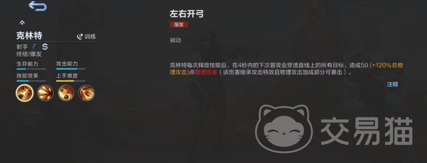 被动技能“左冲右突”,使得克林特在施展完这个技能之后,接下来的普攻将会对他这条线上的目标进行连续穿刺,并对其造成一定的物理伤害。此伤害将会延续目前的攻击力,并且会受到暴击的影响。在连击中加入普通攻击,再加上穿透,这是一个很重要的技巧,可以让你的攻击变得更强。