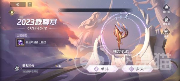 在这个游戏的设定里面大家要想体验排位赛的话,必须要先将新手一阶段的任务全部完成后才能解锁该玩法,此时大家的等级基本上已经达到六级了,解锁该玩法后大家进入该游戏的排位等级是曙光守卫2零颗星。