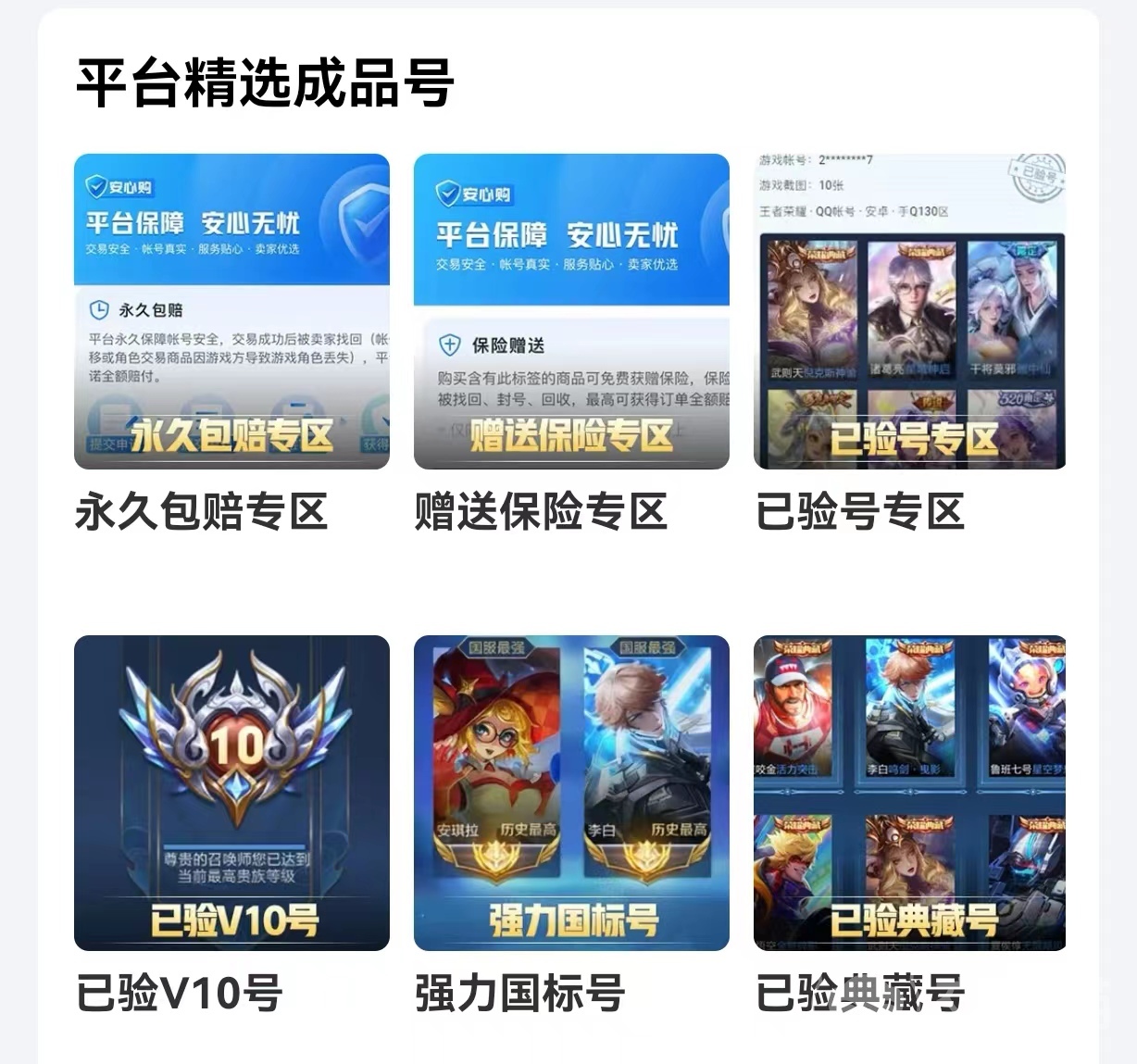 交易猫的卖号效率还非常高,现在王者游戏板块的账号分类更加明确,光是成品号就分成了:永久包赔专区、赠送保险专区、已验号专区、V10专区、国标号专区等,要安全性肯定排列前面的靠谱,买家挑选更方便之后,大大加快了交易的效率,买家少走弯路,也让卖家能更快的达成交易拿到货款。
