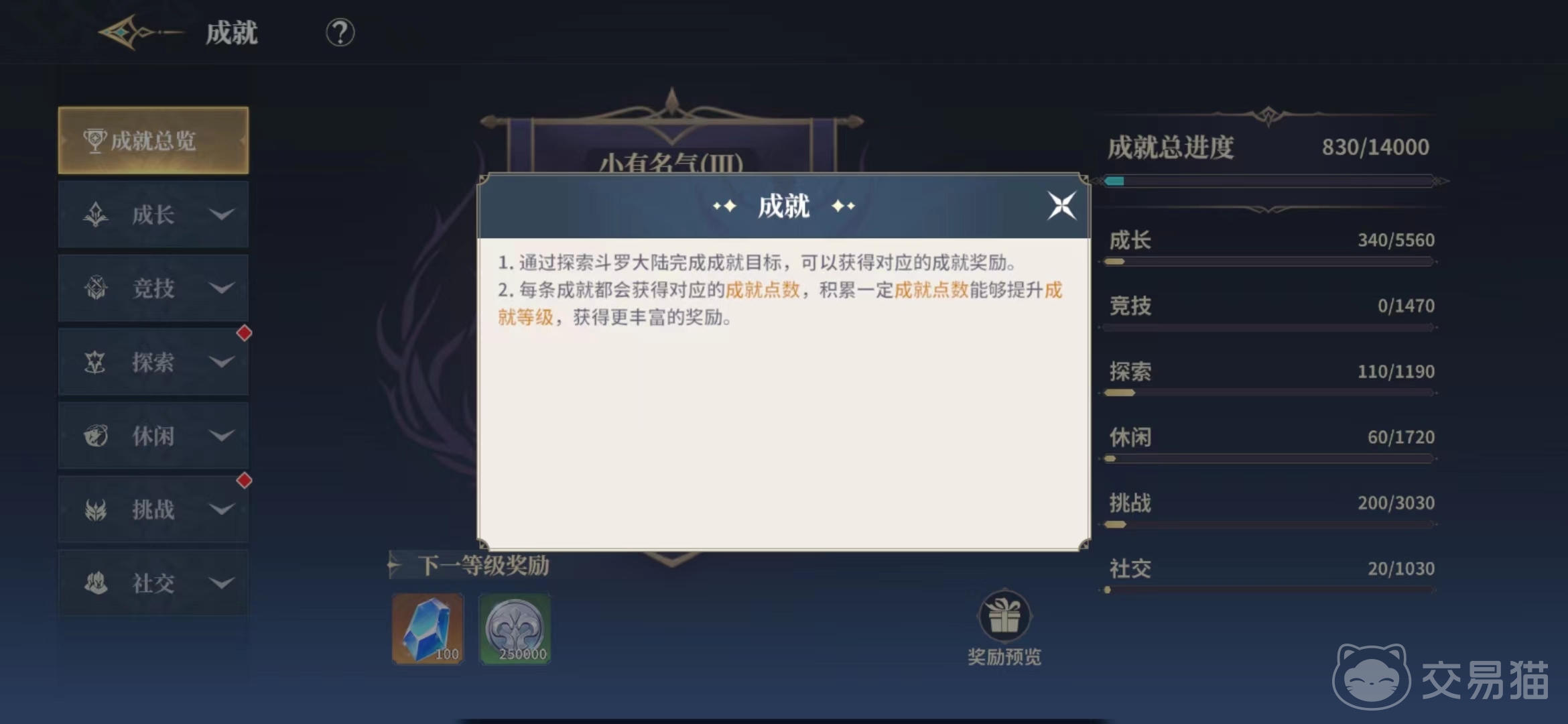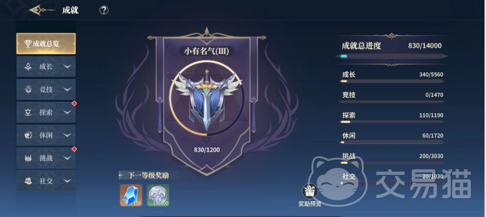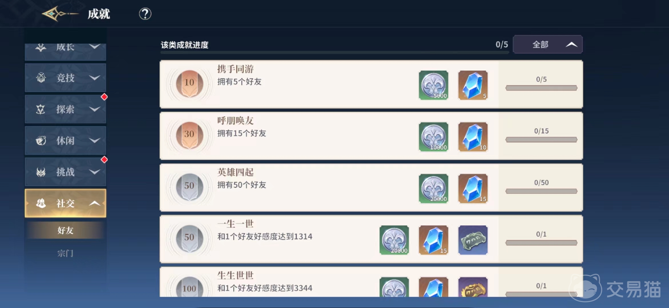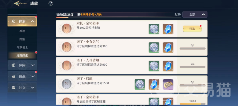 比如成长成就一般是需要长时间积累才可以完成的,大家就不用着急,可以先去完成社交以及挑战成就,社交成就一般都是跟组队加好友有关的目标,而挑战就是跟战斗有关的,休闲类的成就都是跟生活技能有关,探索类的成就大家可以去各类图鉴以及跟NPC交流完成,首先选择好完成的成就这样大家的积分才会积累的更快哦。