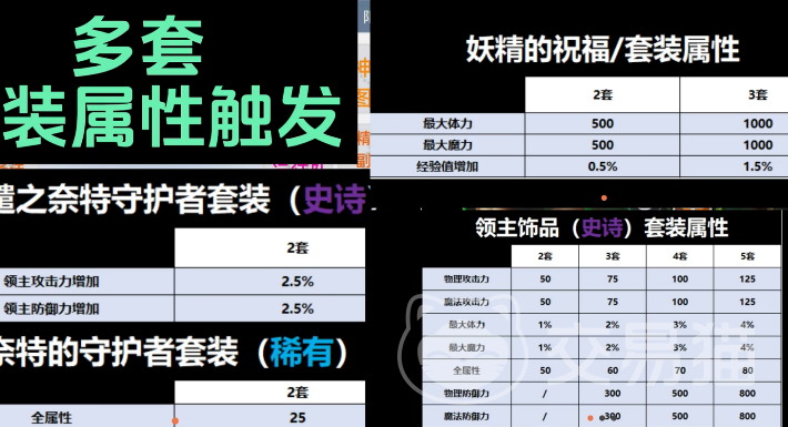 首先,一件装备是有品质之分的,分别为稀有、史诗、神器、传说和神话。因为开服资源有限,小编建议先做史诗。不知道有没有玩家朋友有这样的疑问,为什么不把材料囤积起来,去做品质更高的装备呢?是因为装备好了,才能去高级图挂机,因此资源就增加了。上图这样的配置,可以触发多套套装属性,绝对最大化的属性。