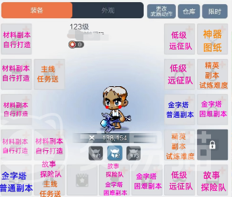 披风、奖牌和脸饰可以通过故事探险队获得,故事探险队65集开启,与主线任务一样,完成就结束,可以拿到一套经验加成饰品,但披风比较弱,玩家需要自行根据日常所需,调整装备来使用。戒指、脸饰和项链,通过打低级远征队可以获得金色枫叶直接兑换,小编建议优先戒指,然后脸饰,最后项链。