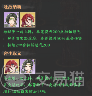 而且郗菁与秦莲两人还可以互相触发羁绊效果,这些效果能帮助秦莲更快的放出怒攻,而且还能获取额外的暴击伤害。郗菁同样也可以凭借羁绊来获取额外的百分比增伤,利用这个增伤她的爆发也会变得更高。