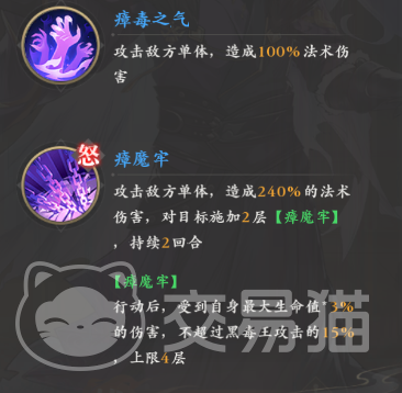 黑毒王本身擅长制造单体法术伤害,作为突击职业他的怒攻释放时间是很早的,通过怒攻还可以让敌人陷入瘴毒从而每回合都受到不俗的伤害,围绕他建队是很不错的选择,所以小编今天带来元尊手游黑毒王阵容搭配推荐,接下来会给大家推荐一套高强度的黑毒王阵容,赶紧一起来了解下吧!