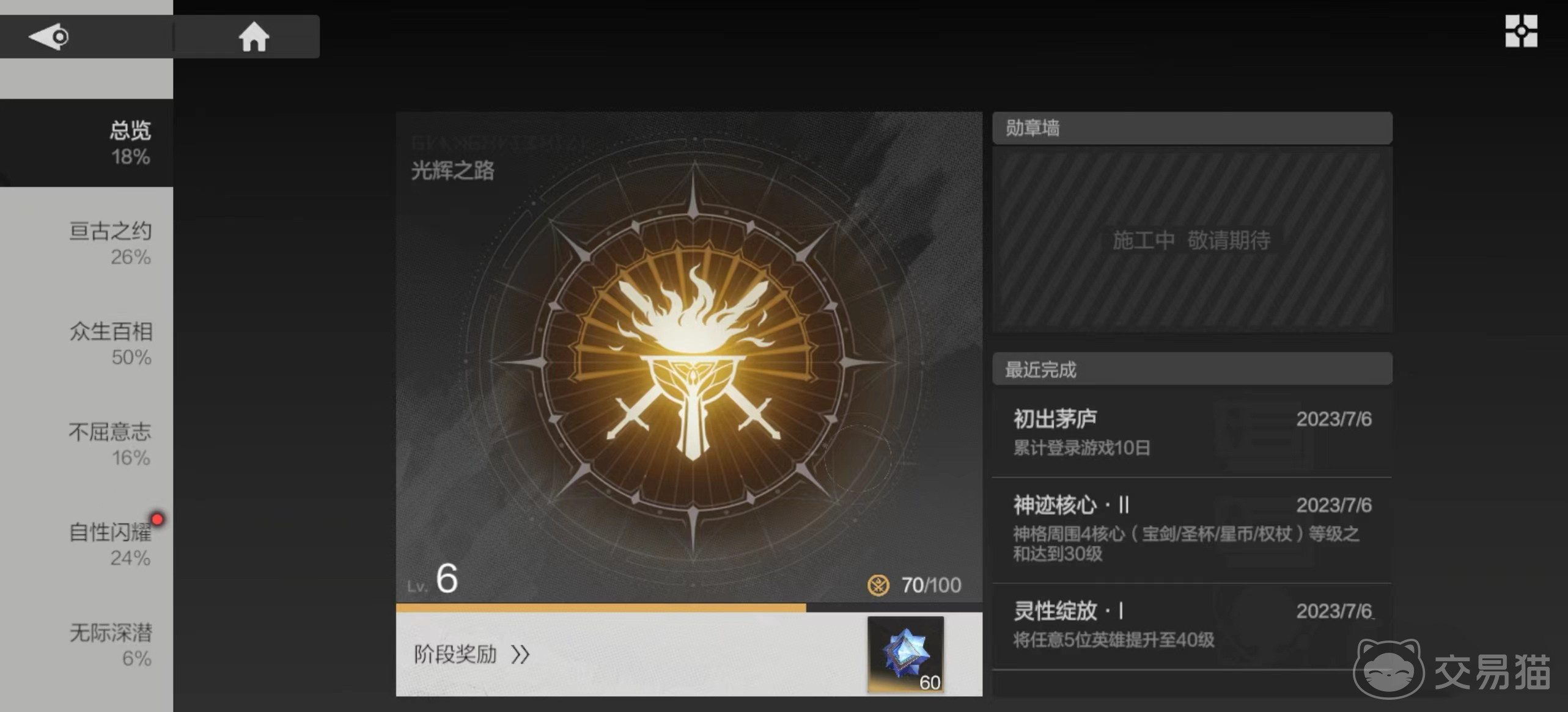 光辉之路其实是一个成长系统,每完成其中的一个副本任务后,就可以在光辉之路中完成一个阶段性的任务,获得相应的奖励,在光辉之路中有多个任务类型,例如亘古之约,众生百相,不屈意志,自性闪耀,无尽深渊等等,这几种类型的任务分别代表了不同的难度以及不同的故事,而且玩家在完成这些任务的时候,会在光辉之路这个成就系统中记录,每完成一个任务就会进行标记和任务进度条,完成所有的任务后就能够领取阶段性的奖励。