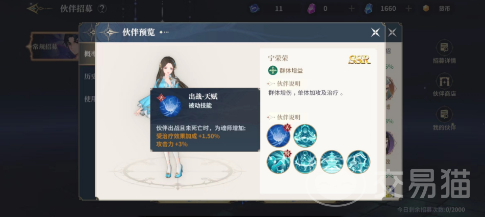 以上就是斗罗大陆史莱克学院宁荣荣怎么样的相关介绍啦,大家要是想要获取宁荣荣就去伙伴招募里面看看,这个SSR角色绝对是辅助里面很好用的一个哦。
