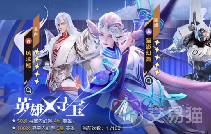 游戏内获取英雄最常见的方法就是通过抽卡,基本上比较强势的英雄像李白凤求凰、夏侯惇等等都可以在这里进行抽取,虽然概率比较低,但是这些高品质角色只有抽卡才能获取,玩家们也需要注重抽卡的保底机制,50次可以获取四星英雄,100次必得五星英雄,这些都是需要好好把握的。寻宝是需要用到寻宝钥匙的,玩家们可以通过做任务以及购买获取。
