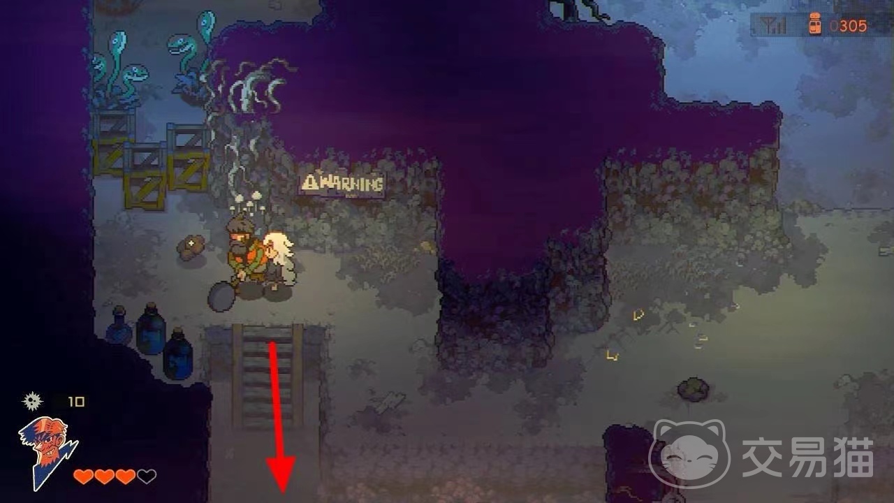 获取介绍信过后自然就要来到学校寻找校长的,走剧情过后珊成功进入了学校,但是约翰却还是无法进入学校,约翰的过关条件是需要先去东北角的一个区域走进农场,在农场当中走完一个小游戏的流程,这个游戏的内容就是需要玩家们用锅把果子打到场地中央挖出来的坑当中,将这一流程走完过后,约翰就可以前往学校了,前往学校会来到一个叫做b3的教室当中,这里的教室也有一个宝箱。宝箱当中同样是武器道具,拿到武器道具过后接着去厕所,厕所有一个会发光的洞窟,在这里进行地底洞穴。